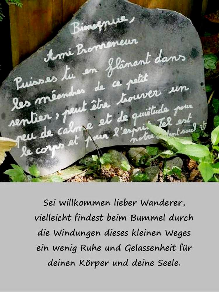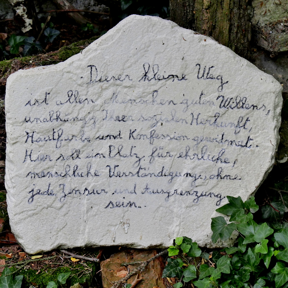 Für mich ist dieser Weg, gewunden wie das Leben, mit seinen Sprüchen und Ruheplätzen, ein Ort um inne zu halten, neue Schritte zu überdenken und den positiven, optimistischen Blick auf das eigene Leben immer wieder zu erneuern.